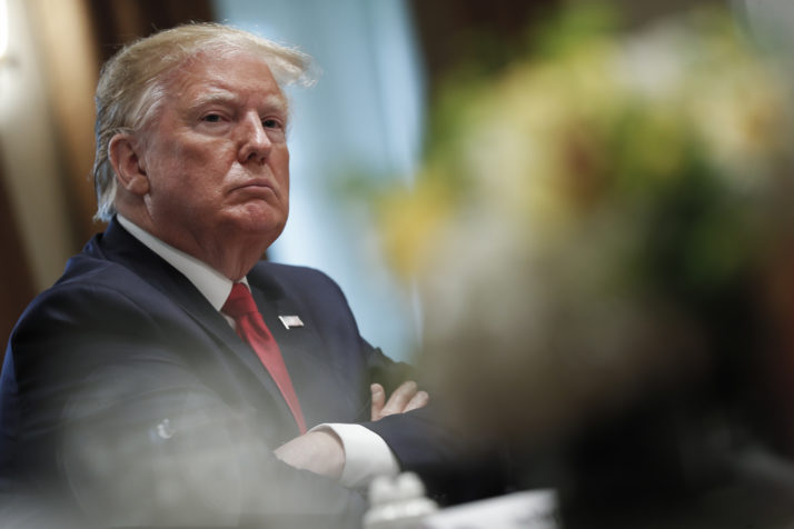 epa07646270 US President Donald J. Trump listens during a working lunch with governors on workforce freedom and mobility in the Cabinet Room of the White House in Washington, DC, USA, 13 June 2019. Following the meeting President Trump did not take questions despite reporters asking about his comments during a TV interview where he stated that he’d be open to taking information from foreign governments in the upcoming election. EPA-EFE/SHAWN THEW