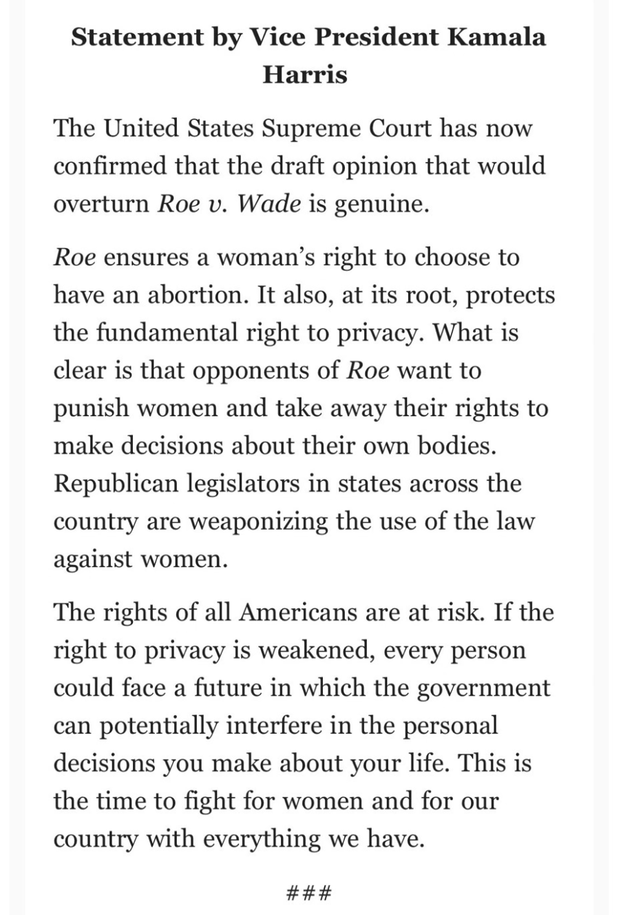 Vice President Kamala Harris also issued a statement, saying that “The rights of all Americans are at risk.. and this is the time to fight for women and for our country with everything we have.”