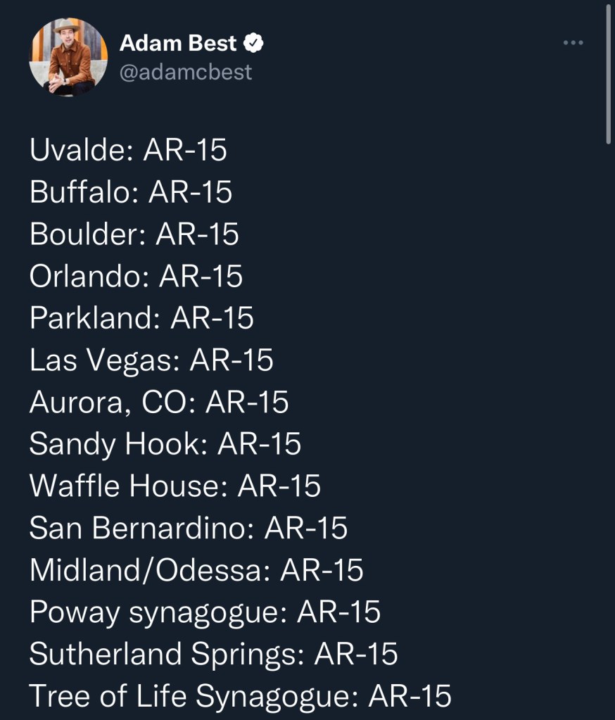 We decided as a nation that mass-murder of children was acceptable when absolutely nothing changed following the mass murder of school children in Sandy Hook. Or Santa Fe, Buffalo, Houston, or all the other cities, offices, parks, neighborhoods, or concerts that saw similar massacres.