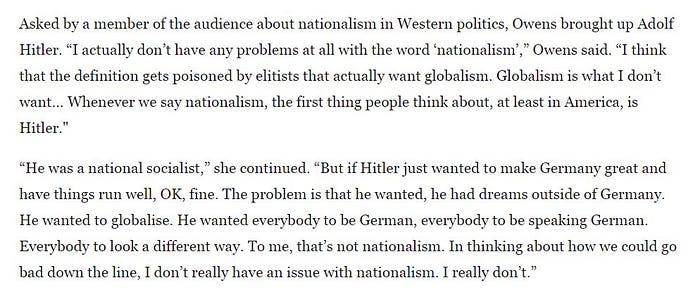 Candace Owens has accomplished nothing, done nothing, contributed nothing, has no successes to share, and is nothing more than an online provocateur who white conservatives use to push their racist, antisemitic, homophobic, and anti-trans hate. She is a mouthpiece for white supremacy and she uses her platform to spew vile at Black Americans. She takes the checks and does exactly as massa wants her to do. Those pats on the head must do wonders for her esteem.