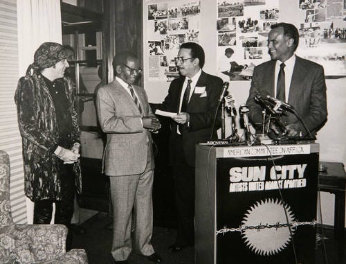 In other words, some of the biggest artists of the time and those who had been invited to perform in Sun City over the years. They joined the decades long protests and requests by Black South Africans to stop feeding money to the racist regime.